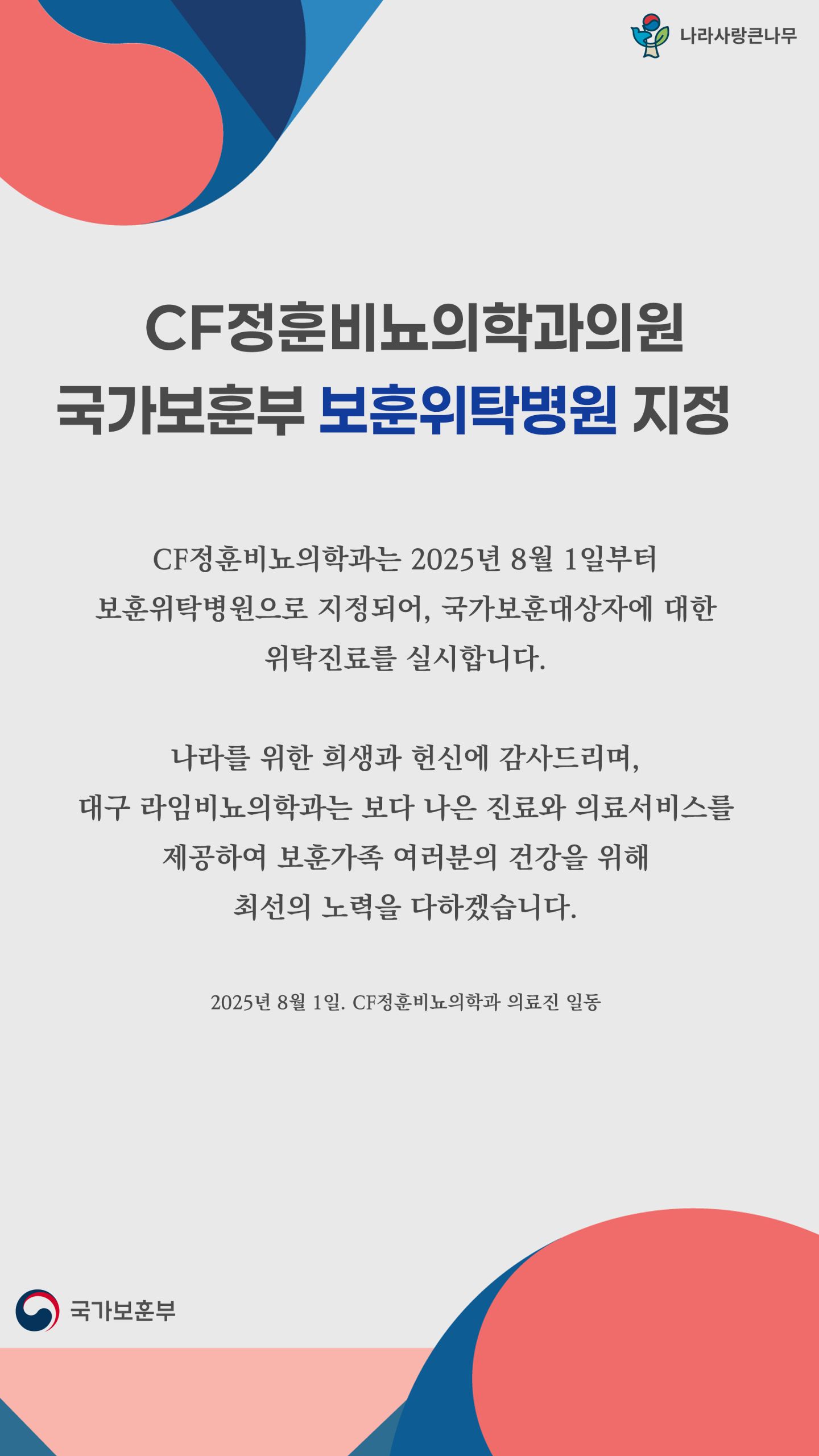 일상 속 작은 습관들로 충분히 예방할 수 있는 질환입니다.