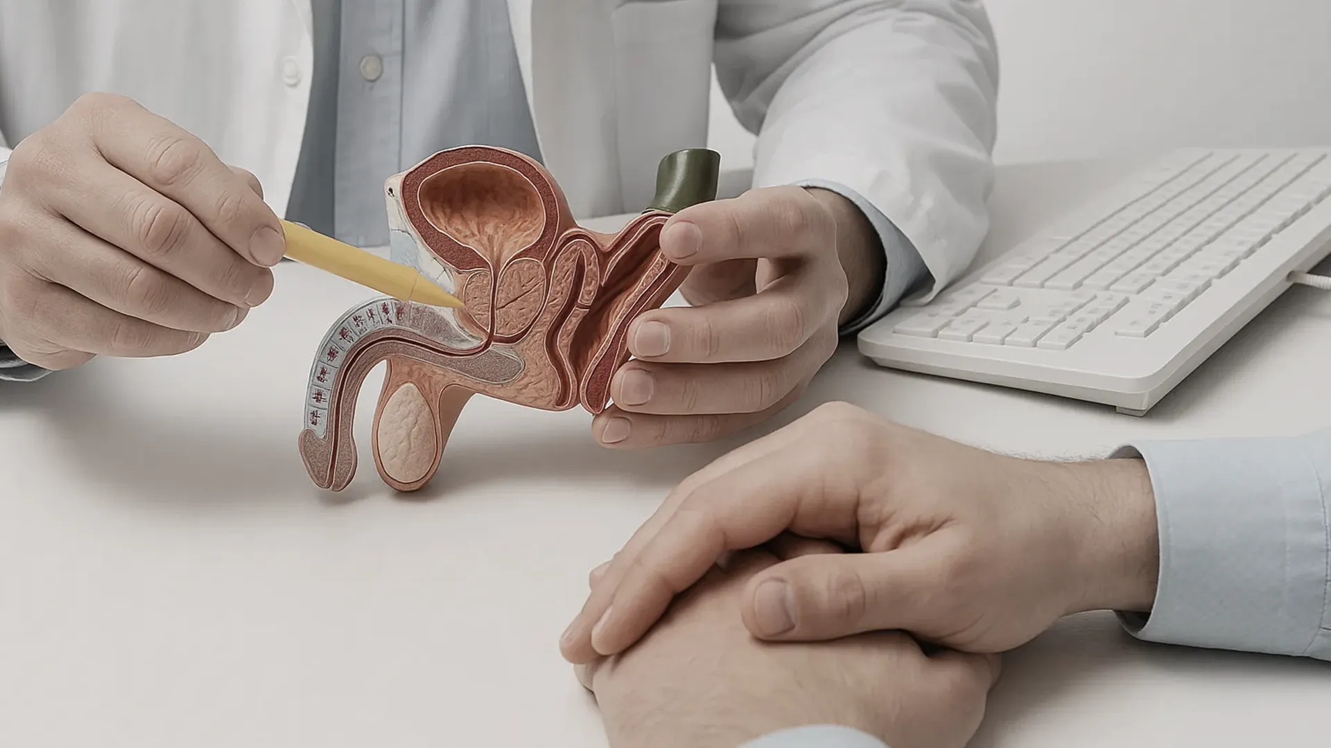 전립선비대증은 남성호르몬(DHT)의 영향으로 전립선 세포가 과증식하여 요도를 압박하는 구조적 변화가 주된 원인입니다.노화, 유전, 비만, 대사질환, 과음, 운동 부족 등이 복합적으로 작용할 수 있습니다.